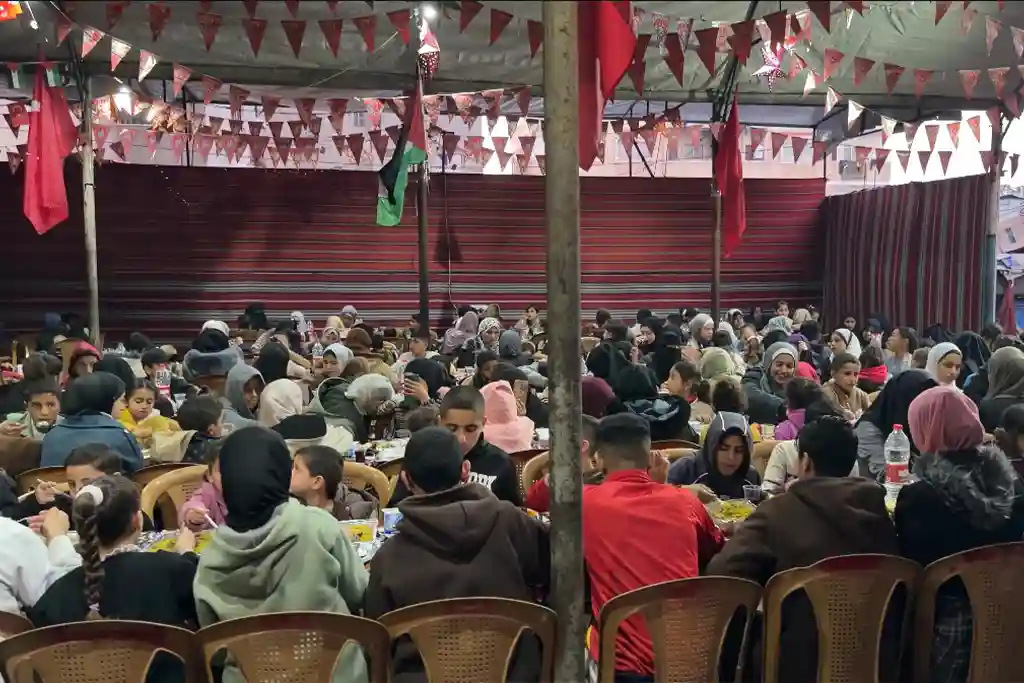 Gazze’de Ramazan ayının 8. gününde, kurulan iftar çadırında ihtiyaç sahibi aileler için iftar sofraları kurulmaya devam ediyor. Ramazan’ın bereketini ve paylaşma ruhunu yaşatmayı amaçlayan organizasyon kapsamında, her gün yüzlerce kişiye sıcak iftar yemeği ikram ediliyor.