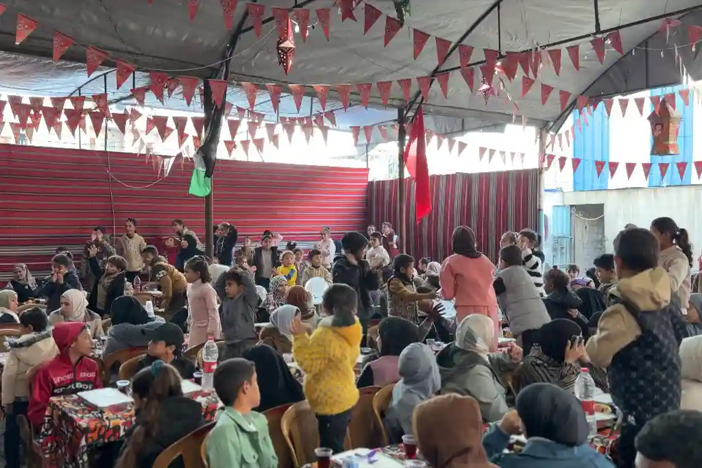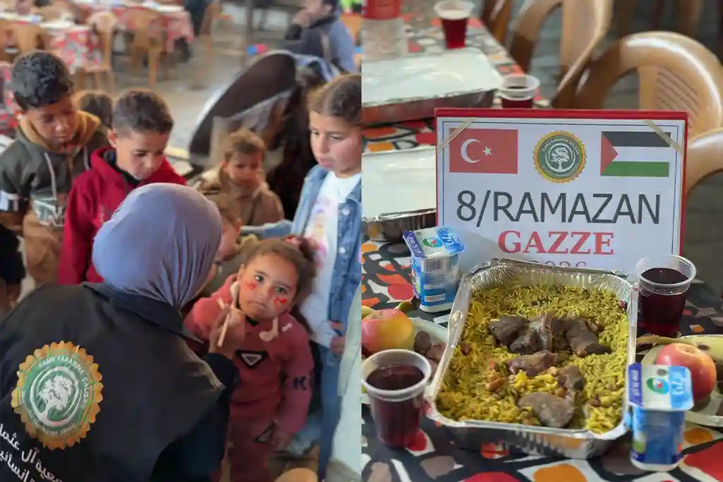 Yetimlerden yaşlılara, kadınlardan çocuklara kadar geniş bir kesime ulaşan iftar ikramlarıyla, Ramazan’ın manevî atmosferi Gazze’de yaşatılmaya devam ediyor.