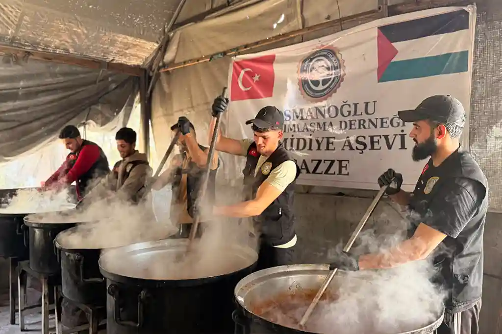 Osmanoğlu Yardımlaşma Derneği yetkilileri, Gazze’de yürütülen yardım çalışmalarının bağışçıların destekleriyle devam ettiğini belirterek, mobil aşevi hizmetinin özellikle ulaşılması güç bölgelere yardım ulaştırmada önemli bir rol üstlendiğini ifade etti.