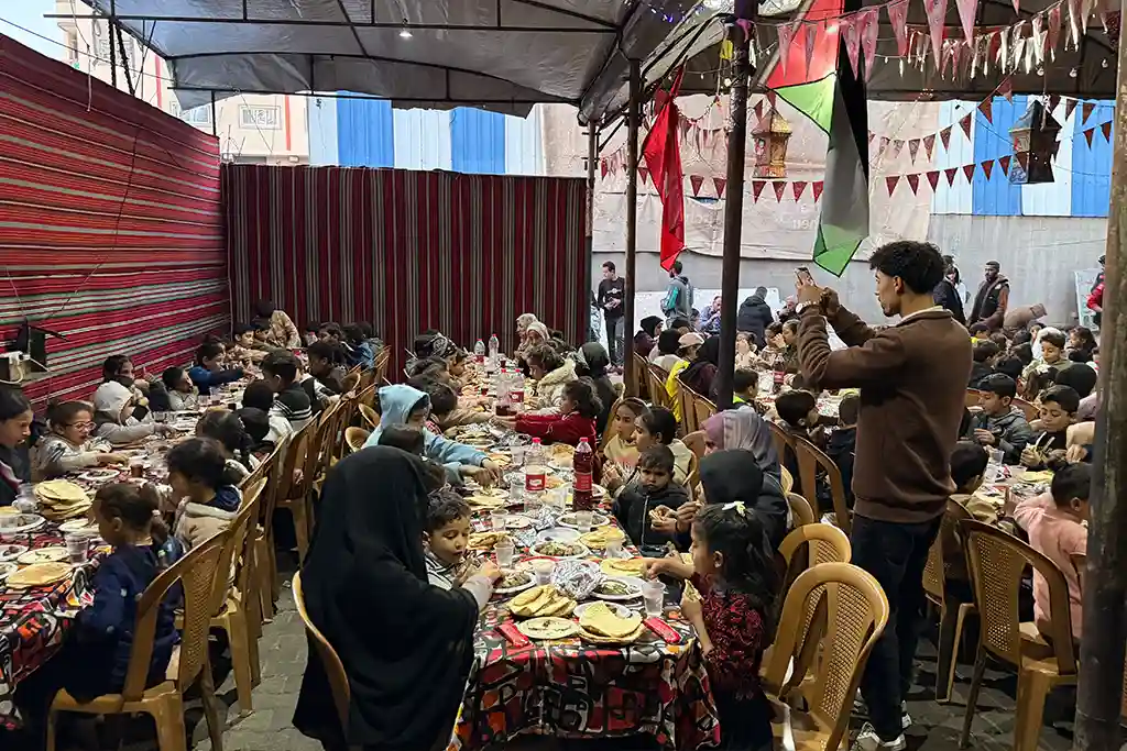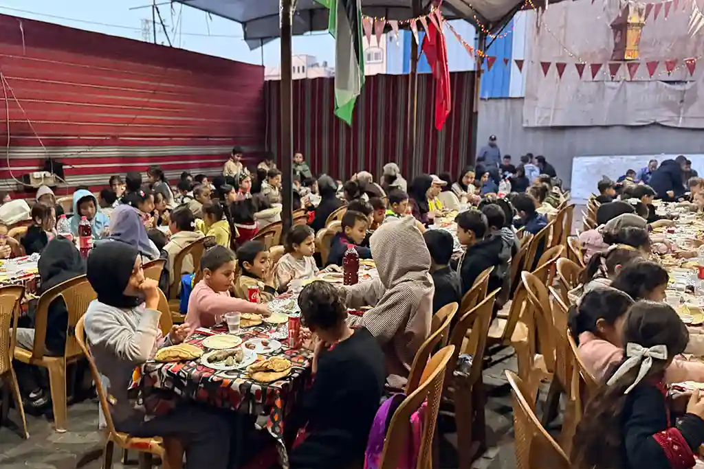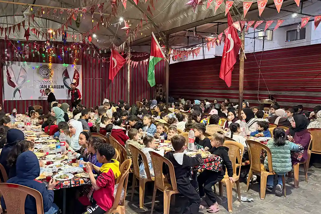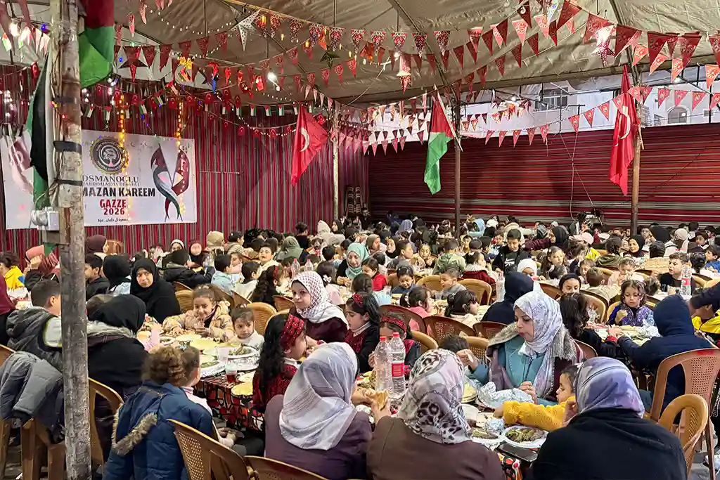 Hamidiye Aşevi’nde hazırlanan sıcak yemekler, kurulan iftar sofralarında Gazzeli ailelere ve ihtiyaç sahiplerine ikram edilirken, aynı zamanda çevrede bulunan ailelere de ulaştırıldı. Zorlu şartlar altında yaşam mücadelesi veren birçok kişi, Osmanoğlu Yardımlaşma Derneği’nin kurduğu iftar sofralarında bir araya gelerek oruçlarını açma imkânı buldu.