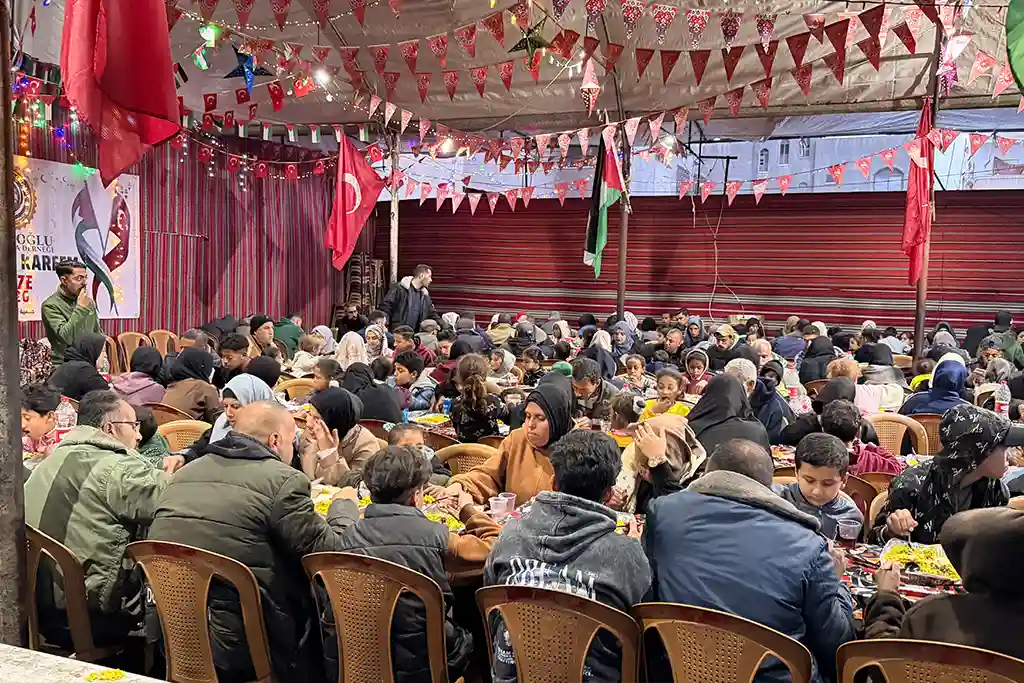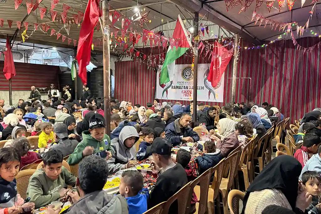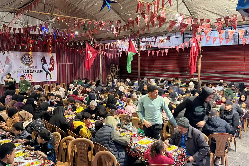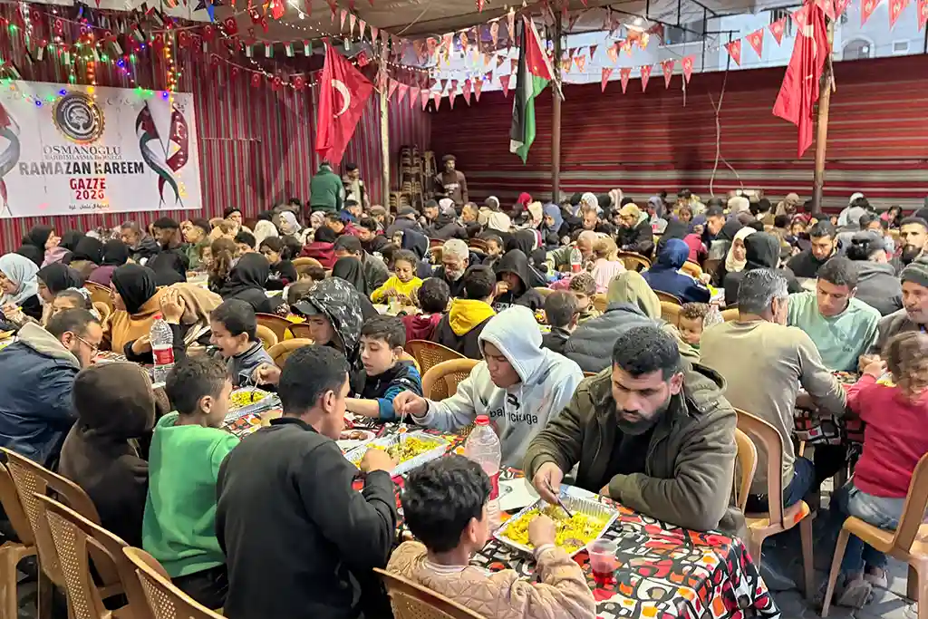 Hamidiye Aşevi’nde hazırlanan sıcak yemekler, iftar sofralarında misafirlere ikram edilirken, çevredeki ihtiyaç sahiplerine de ulaştırıldı. Zorlu yaşam koşulları altında yaşayan Gazzeliler, Osmanoğlu Yardımlaşma Derneği’nin kurduğu iftar sofralarında bir araya gelerek Ramazan’ın paylaşma ve dayanışma ruhunu deneyimledi.