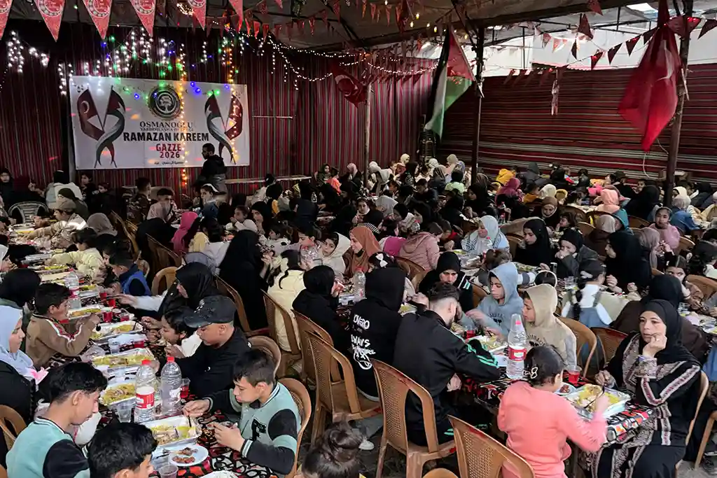 Hamidiye Aşevi’nde hazırlanan sıcak yemekler, kurulan iftar sofralarında Gazzeli ailelere ikram edilirken, çevrede bulunan ihtiyaç sahiplerine de ulaştırıldı. Zorlu yaşam koşulları altında hayatlarını sürdüren birçok aile, Osmanoğlu Yardımlaşma Derneği’nin destekleriyle iftarlarını sıcak yemekle açma imkânı buldu.