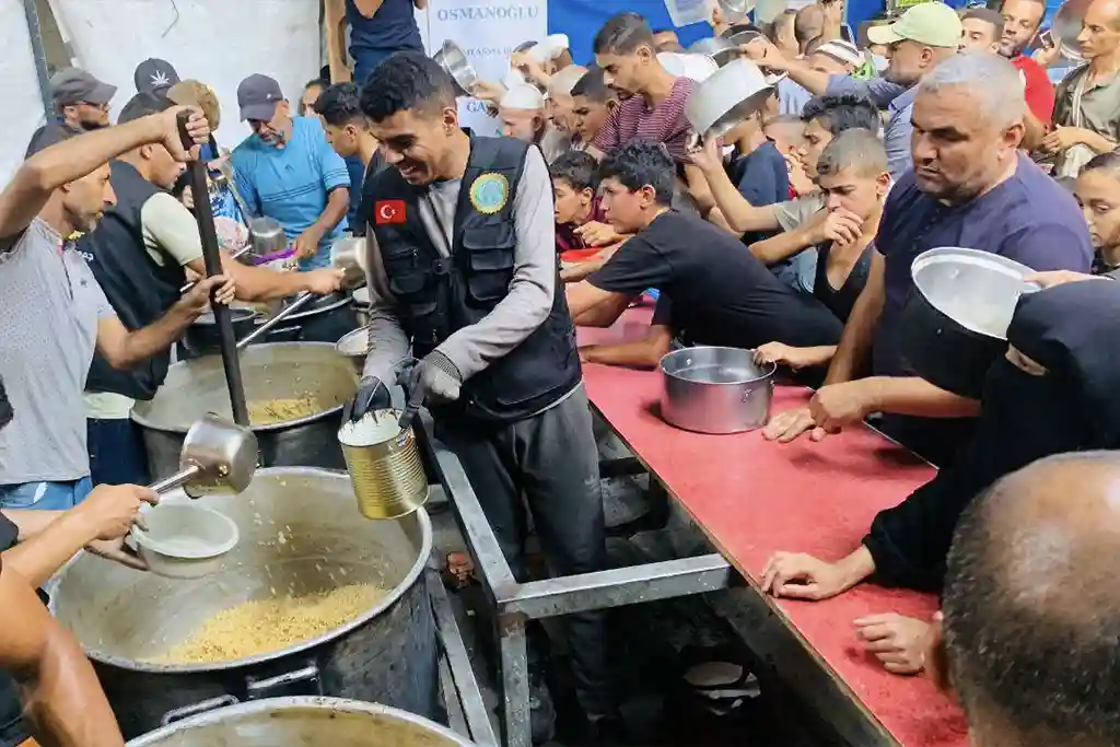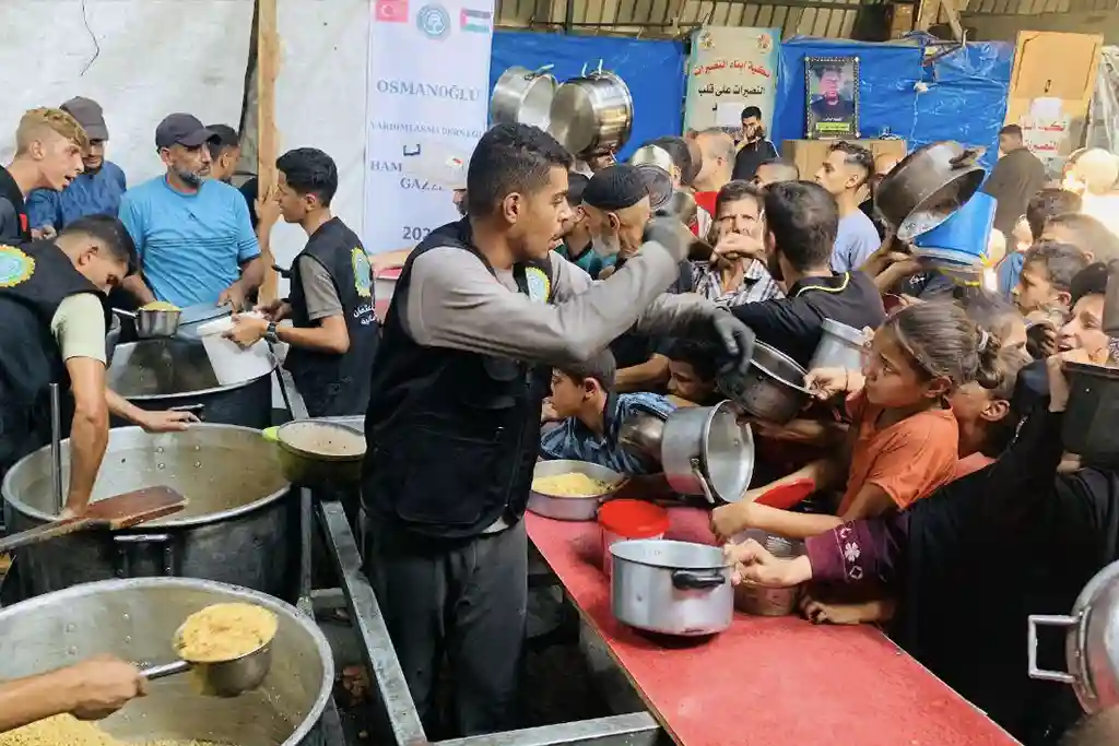 Gazze’de süren insani kriz, her geçen gün daha da derinleşiyor. İsrail saldırıları nedeniyle birçok bina yıkılırken, siviller barınma ve gıda ihtiyaçlarını karşılamakta büyük zorluk yaşıyor. Bu zor günlerde Osmanoğlu Yardımlaşma Derneği, Gazze’de kurduğu Hamidiye Aşevi aracılığıyla halka sıcak yemek dağıtarak yaralara merhem olmaya devam ediyor.
