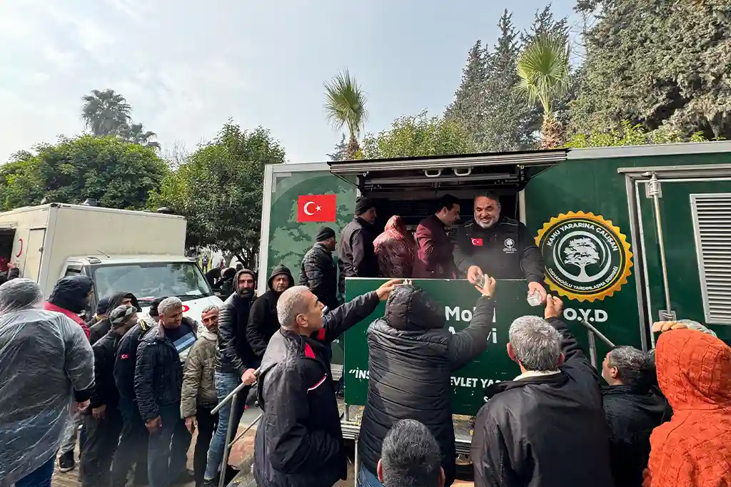 Osmanoğlu Yardımlaşma Derneği, Hatay’da 455.000. Afet Konutu Kura Alanında anlamlı bir yardım faaliyeti gerçekleştirdi. Dernek, Hatay Hamidiye Mobil Aşevi aracılığıyla afet bölgesindeki vatandaşlara ikramlık dağıtarak destek oldu.