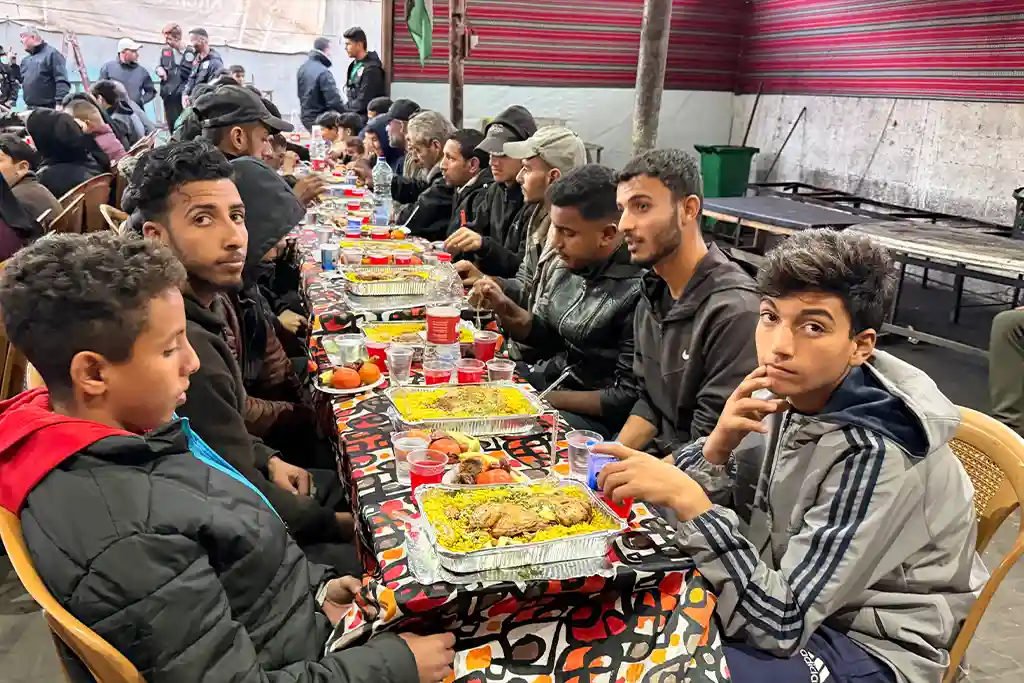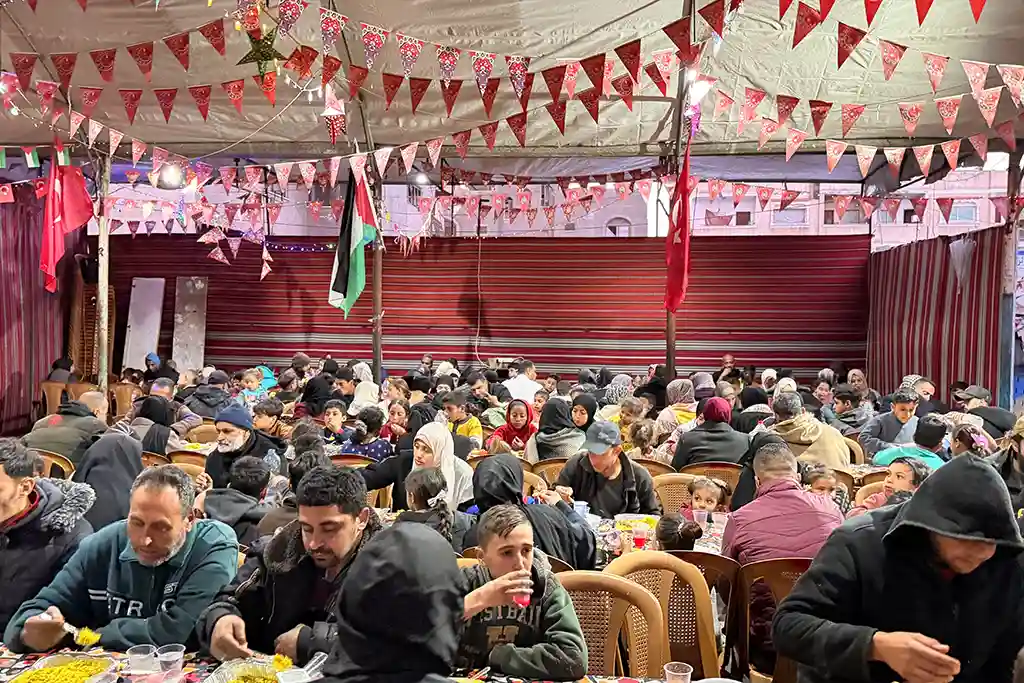 Gazze’de zor şartlar altında yaşam mücadelesi veren aileler, yetimler ve yaşlılar için kurulan iftar sofraları, Ramazan’ın paylaşma ve dayanışma ruhunu yaşatıyor. Hamidiye Aşevi’nde hazırlanan yemekler hem aşevinde misafir edilen vatandaşlara sunuluyor hem de çevredeki çadırlarda kalan ihtiyaç sahibi ailelere ulaştırılıyor.