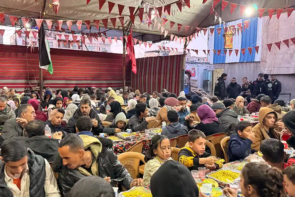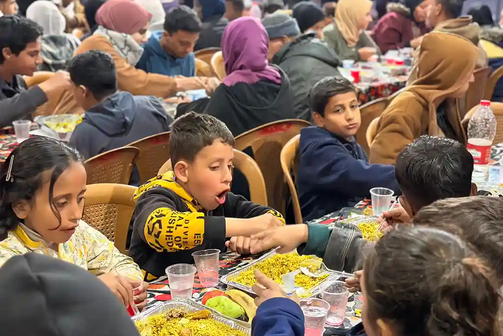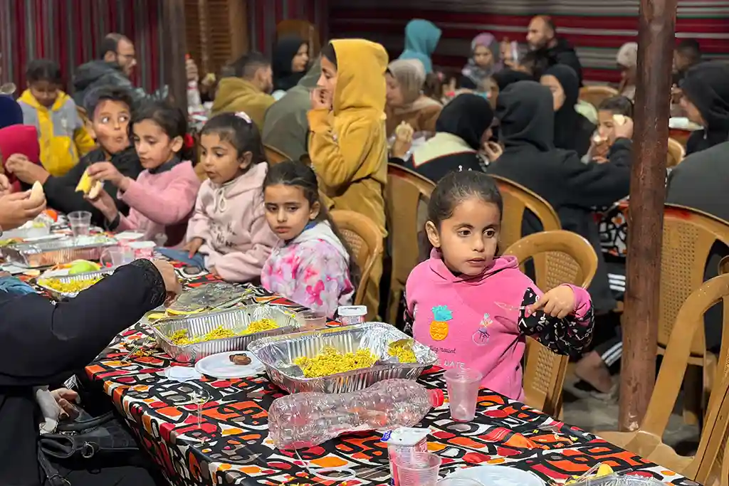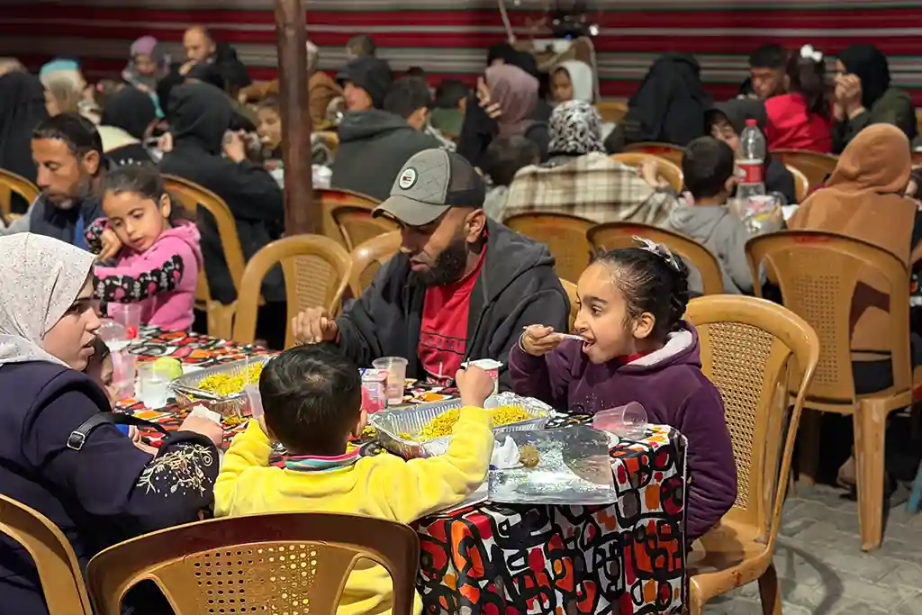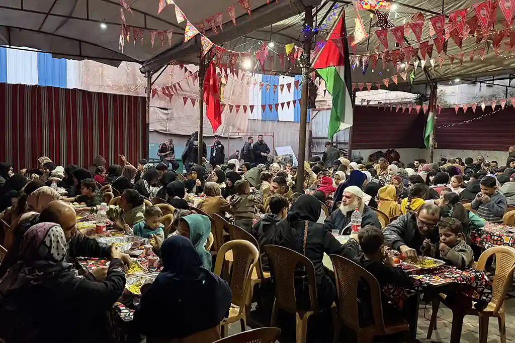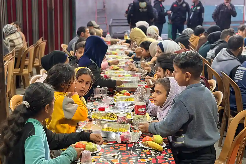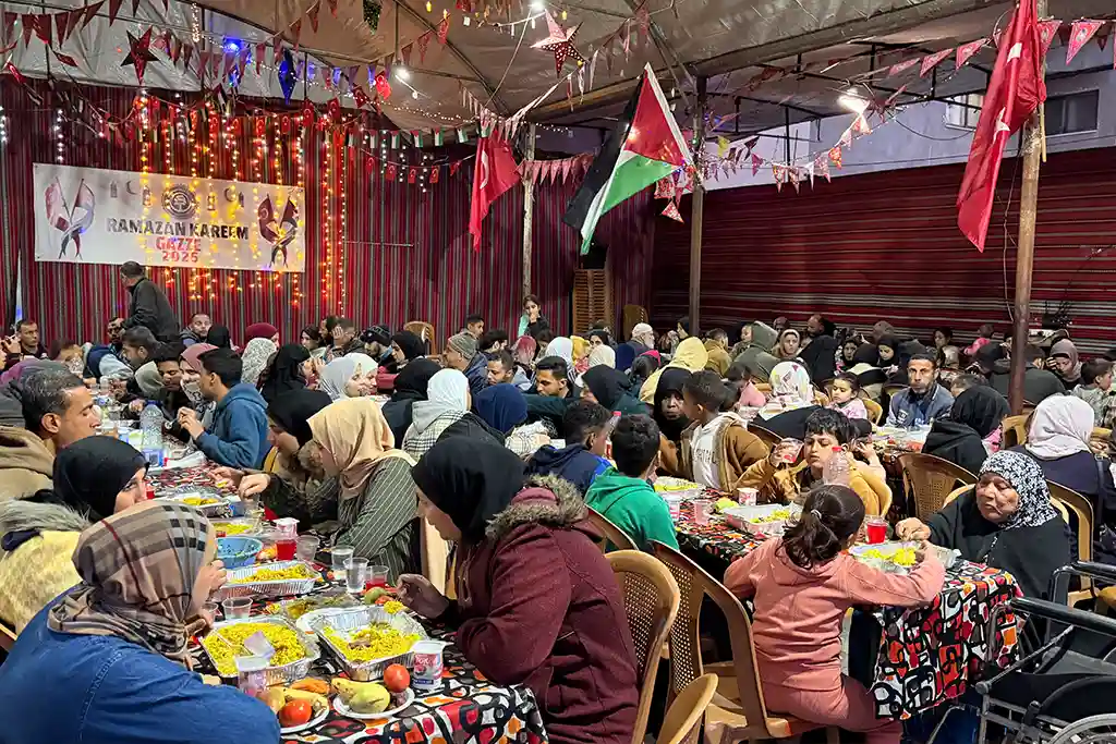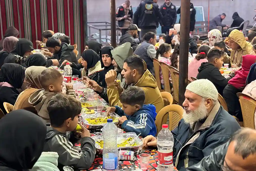 Dernek tarafından organize edilen iftar programında, sıcak yemek ikramı yapılırken Ramazan’ın paylaşma ve kardeşlik ruhu bir kez daha yaşatıldı. Zor şartlar altında yaşam mücadelesi veren Gazzeli aileler için kurulan iftar çadırı, bölgedeki dayanışmanın önemli merkezlerinden biri hâline geldi.