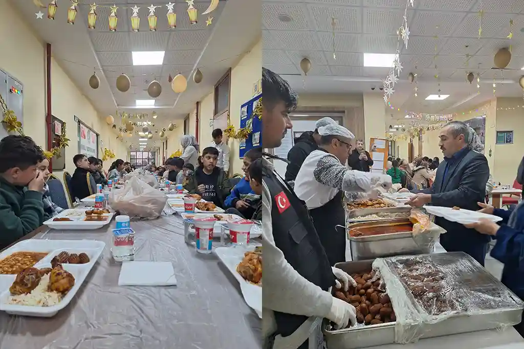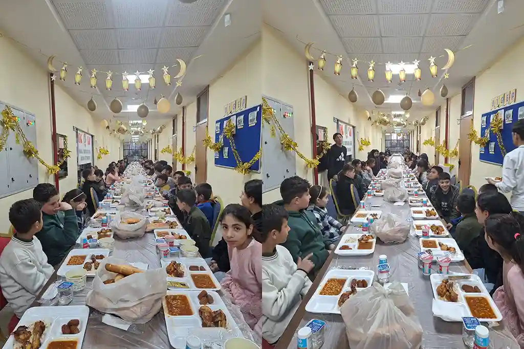 Toplam 150 kişilik iftar sofrasında öğrenciler ve öğretmenler bir araya gelerek, Ramazan’ın paylaşma ve dayanışma ruhunu yaşadı. Osmanoğlu Yardımlaşma Derneği yetkilileri, iftar sırasında devletimiz, milletimiz ve Ümmet-i Muhammed için dualar edildiğini belirtti.